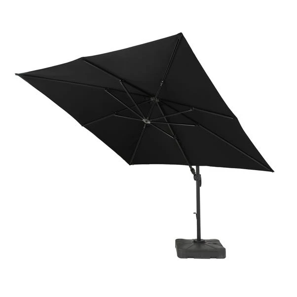 The Royalcraft 3m Deluxe Cantilever Parasol boasts a beautiful contemporary grey colourway and is perfect for keeping you shaded this summer. This parasol comes with a hand-crank lift system and an easy tilt operation to help you adjust the parasol to be suit your environment. To help prevent rust, the strong aluminium frame has a solid powder coat. A 100kg base is included with this parasol.