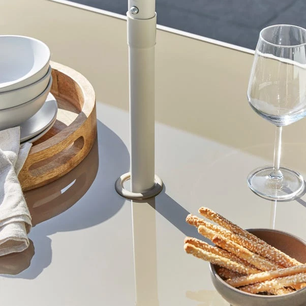 This set is designed to ensure flexibility in your outdoor space. Crafted to withstand various weather conditions, the set is weather resistant, making it suitable for use throughout the seasons although we always recommend using a cover when not in use and during the colder/wetter months. Each set includes a parasol, providing shade and enhancing the overall dining experience.