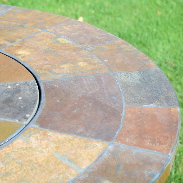 Get ready to cosy up with our Bayfield Firepit 89cm Table with 4 Ascot Chairs Set! This outdoor table set is perfect for any backyard gathering, featuring a natural stone top that doubles as a firepit, so you can enjoy the warmth all year round. The stackable chairs are great for saving space, and they even come with cushions for extra comfort.
