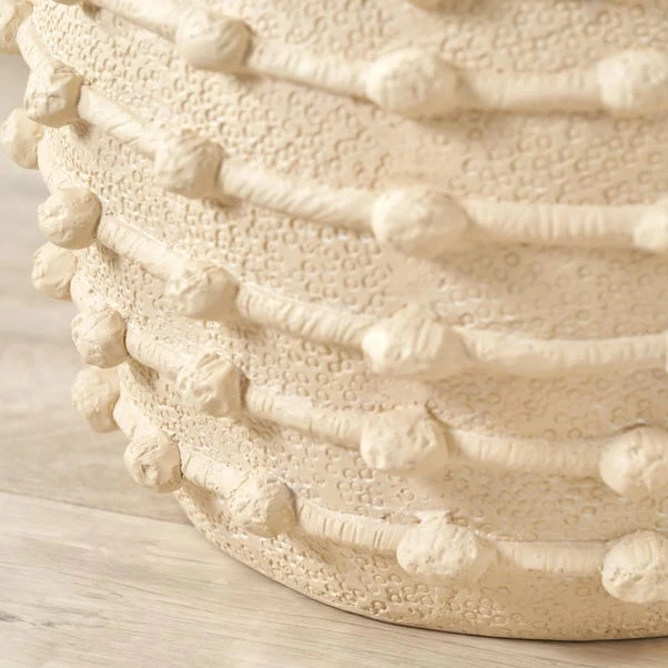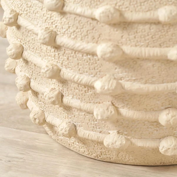 Add texture and style to your space with this striking bobble fibrestone plant pot. Its contemporary design, available in cream or black, brings a modern yet warm touch to any interior. Perfect for displaying faux plants or as a standalone statement piece, it’s available in two sizes to offer versatility to suit different spaces and styling needs. Due to its fibrestone material, this pot is not waterproof, making it best suited for decorative use. A simple yet impactful way to refresh your home décor.