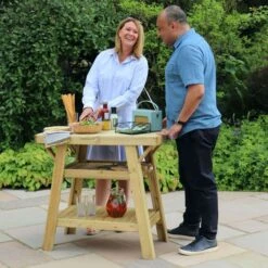 The new Garden bar, is quick and easy to set up by simply opening the two main storage doors to make a sturdy base for the fold down counter which acts as a bar. Opening the side panel hinged doors reveals fully fitted cabinet shelving ready to display a range of drinks and glasses. Guests can sit comfortably at the bar by removing the two sturdy stools which are conveniently stored inside the base section. The two stools are stackable making more room for storage. The innovative design of the compact shape opens up to make a great entertaining space. When not in use, the stools are simply stored away, the bar counter and doors neatly folded back into place and secured with fasteners. Made from sustainable slow grown soft wood from responsibly managed forests and comes with a 10 year guarantee against rot. Comes with am optional black protective cover designed specifically for the Garden Bar set. Made from PVC backed polyester fabric with a central zip and built in cords with cord locks to allow you to fully or partially close the cover around the arbour. The cover is showerproof and has a wipe clean surface.