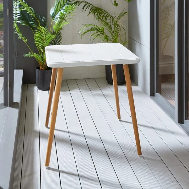 This bistro set features a plastic frame and wooden legs to bring a modern look to your garden. Crafted to withstand varying weather conditions, this bistro set ensures durability and longevity without compromising on style or comfort. The weather-resistant design allows you to leave the set outdoors without worrying about damage from sun, rain, or other environmental factors. With a commitment to low maintenance, this bistro set is ideal for those seeking hassle-free outdoor furniture, providing a stylish and functional space to enjoy al fresco dining or relaxing moments in your garden or patio.