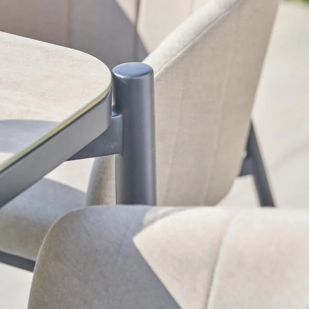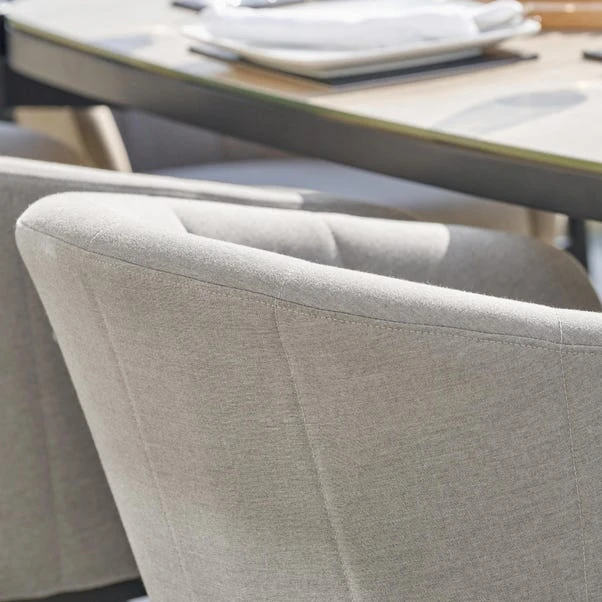 This set includes 6 Dining Chairs and 1 Dining Table, offering a perfect balance of style and comfort. The chairs are upholstered in Putty coloured Acrylic fabric, which is UV resistant and able to endure up to 1,000 hours of direct sunlight, all while maintaining its superior finish. The table and chairs feature a sleek, powder-coated aluminium frame in Black, ensuring both strength and a modern look. This set is a must-have for any outdoor dining area. For added longevity, consider using an Aerocover to protect the set when not in use.