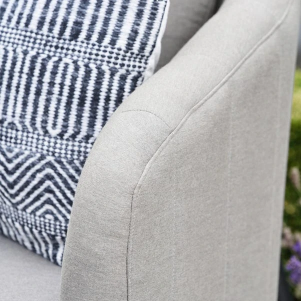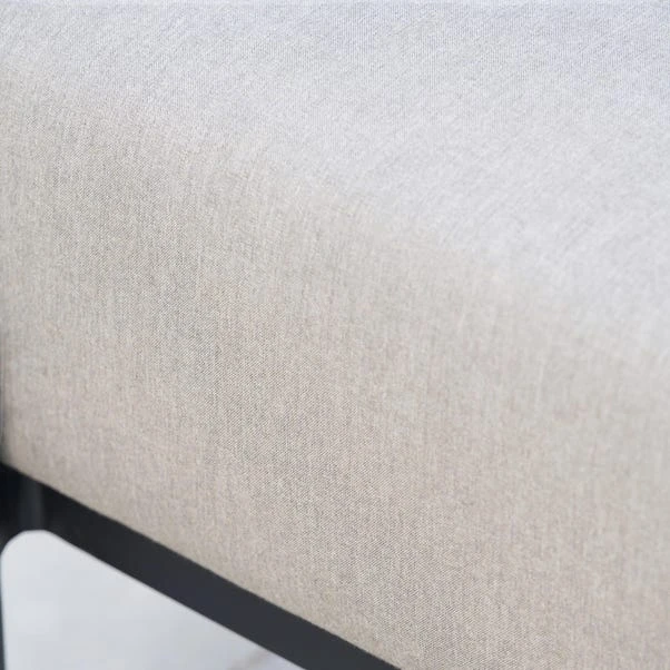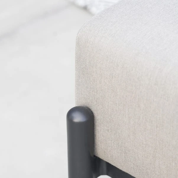 This set includes a Left Arm Sofa, Right Arm Sofa, Adjustable Table, Bench, and Footstools, making it perfect for lounging and entertaining. The Putty coloured Acrylic fabric used for the seating is UV resistant, withstanding up to 1,000 hours of direct sunlight while preserving its finish. The sleek, powder-coated aluminium frame in Black complements the concrete-effect, printed glass table top, creating a modern, cohesive look. The adjustable dining table can effortlessly switch between coffee table height and dining height with a gas pump-assisted mechanism.