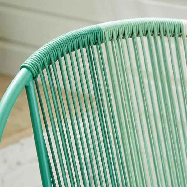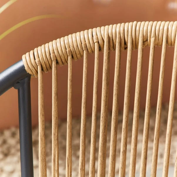 The Santorini Bistro Set brings a pop of vibrancy to your garden with its bold, contrasting colours and stylish rattan design. This 2-seater set, complete with a coffee table, is crafted from weather-resistant materials and supported by a sturdy powder-coated steel frame, making it both functional and visually striking.