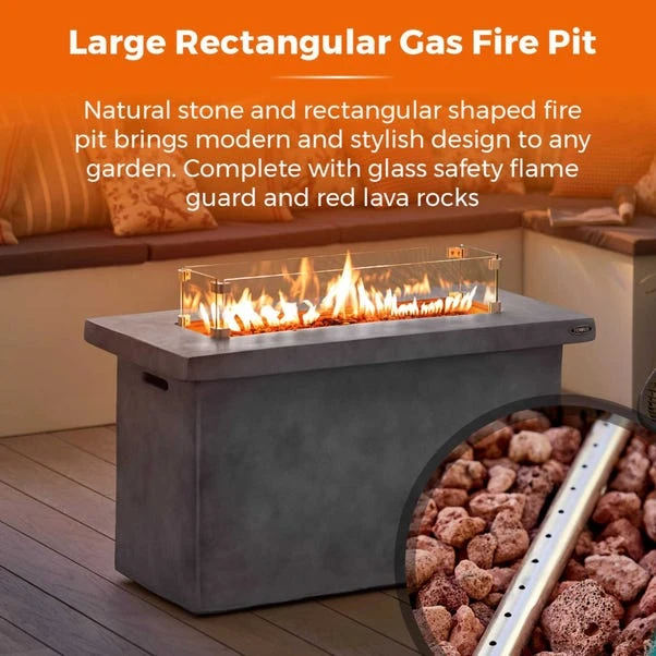 The natural stone look is perfect for any garden, and the rectangular shape is perfect for gathering around with friends and family. The Tower Magna Rectangular Gas Fire Pit includes red lava rocks for an extra touch of style. The hose and regulator are included, so you’ll be ready to start the fire as soon as it arrives. So, grab a glass of wine, gather your friends around the Tower Magna Rectangular Gas Fire Pit, and enjoy the warmth and ambience of a cosy fire on a mild summer night.